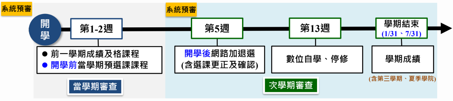 另提醒,開學第1-2週,各單位行政老師會針對1131學期成績已及格及1132學期開學前預選課課程進行審核,1132學期開學後加選課程將於1141學期審查。